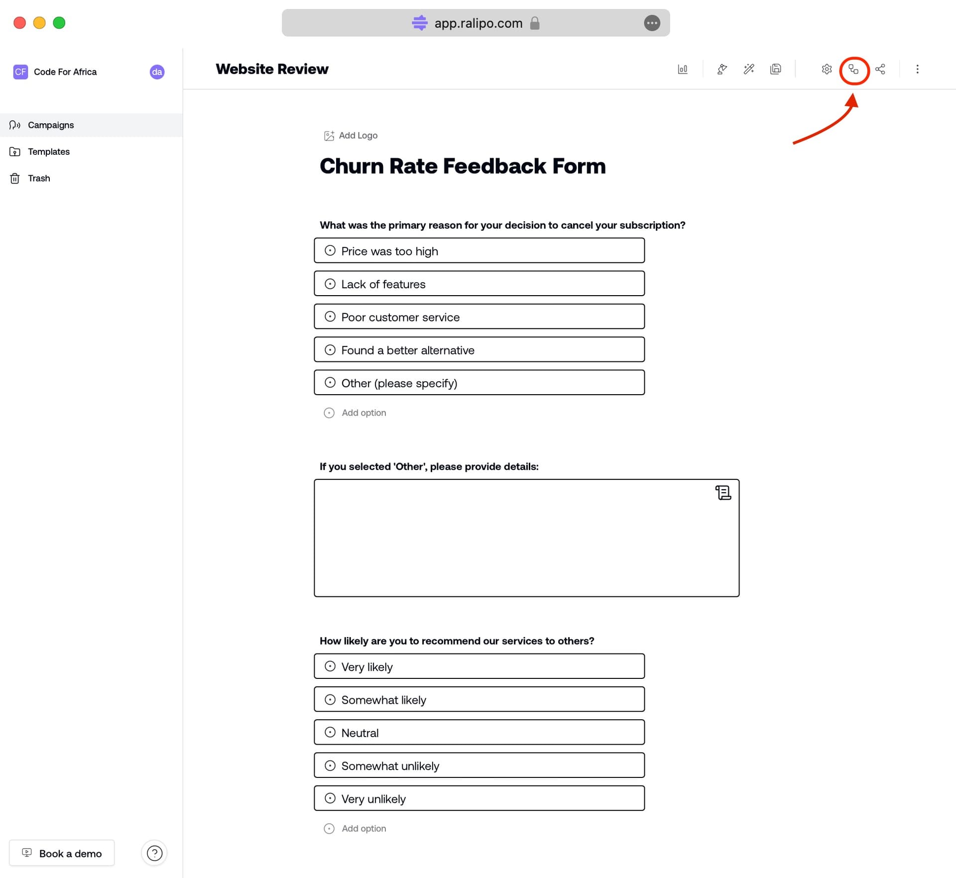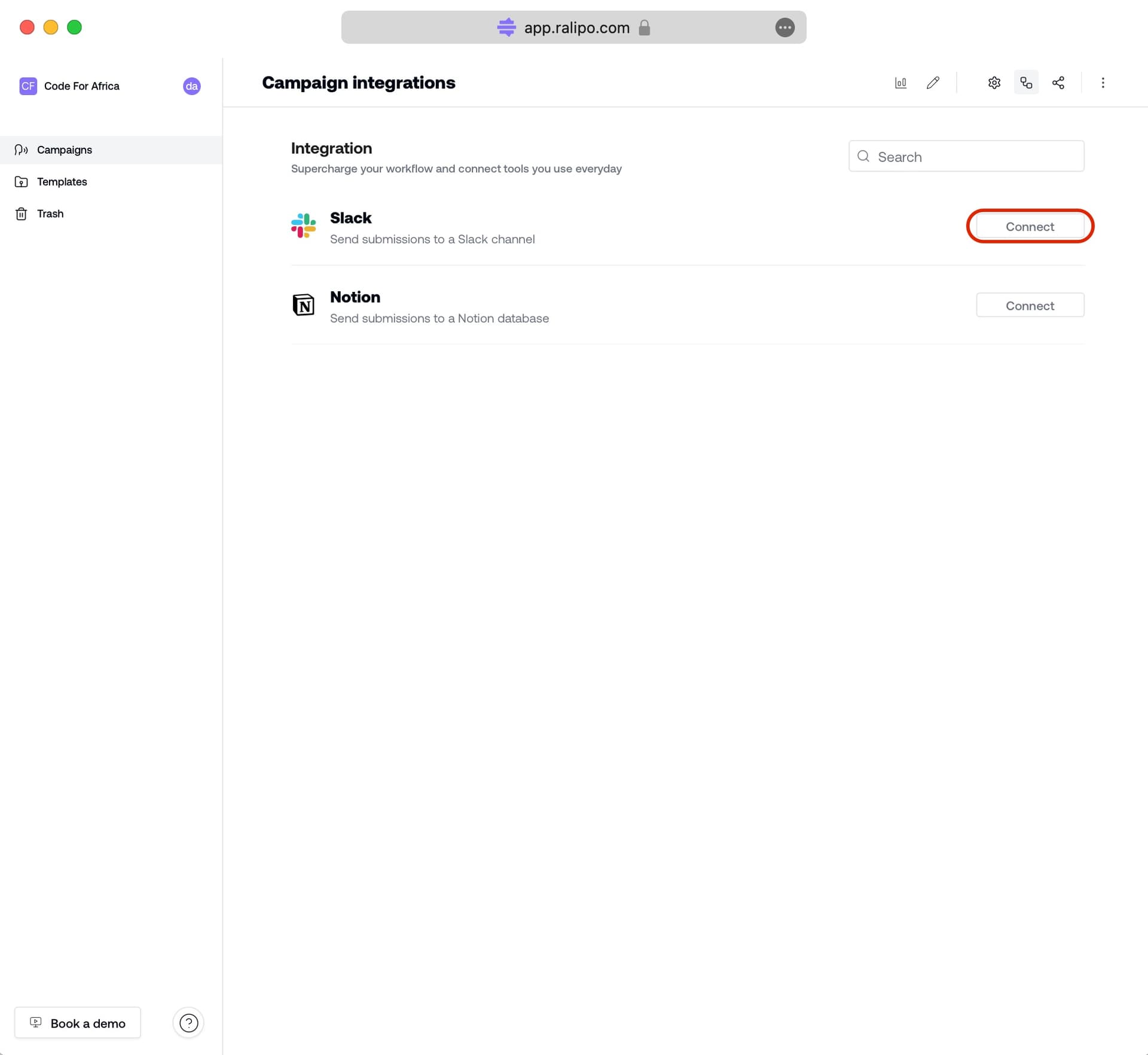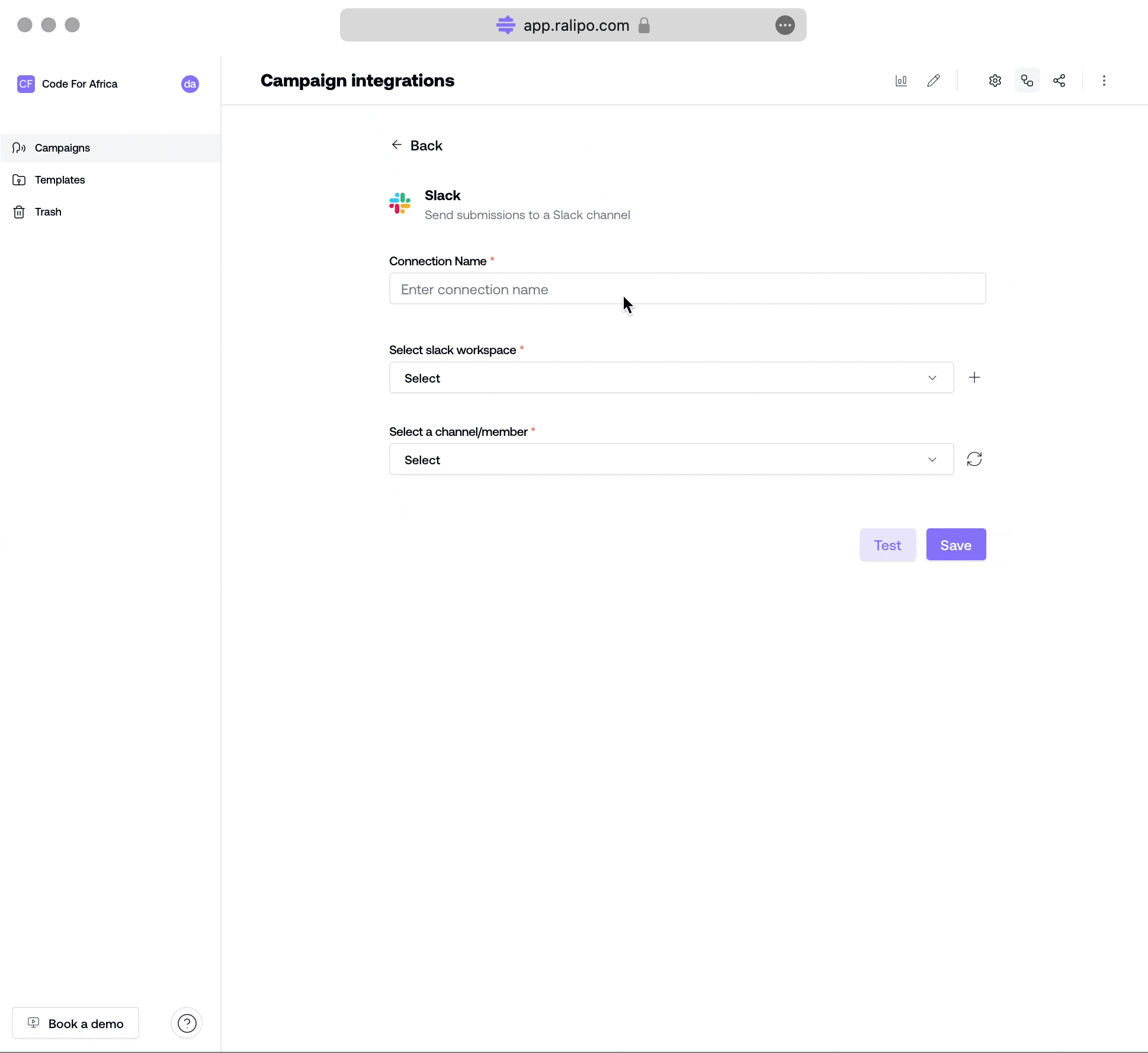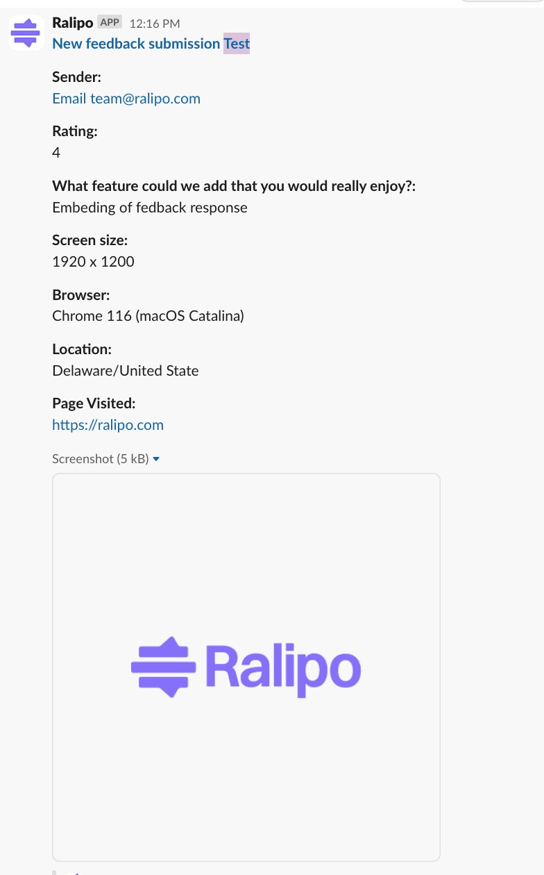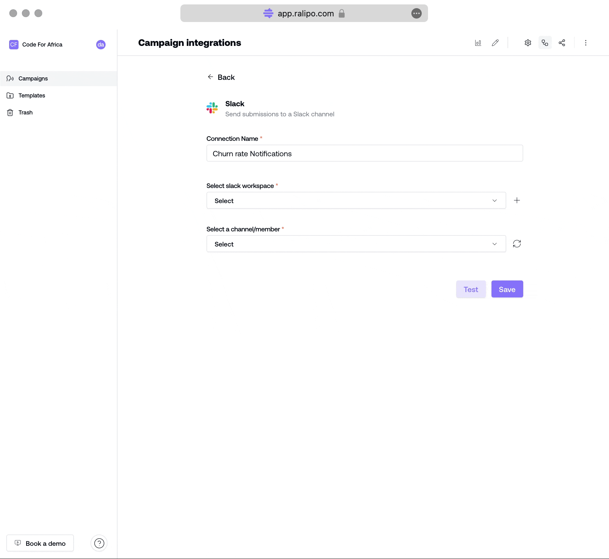 With Slack you can notify members of your private workspace when a feedback is submitted via Ralipo campaign.